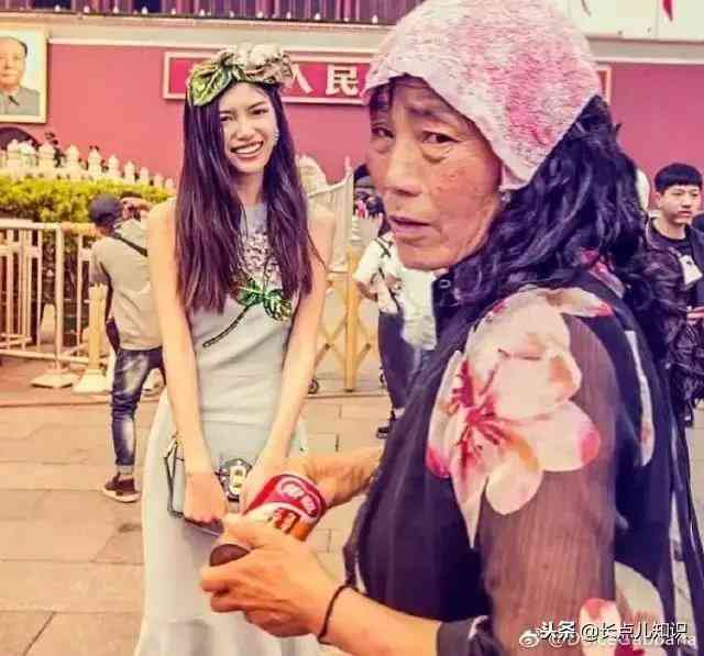 圖片上,美麗的模特和憔悴的中國大媽,形成鮮明對比