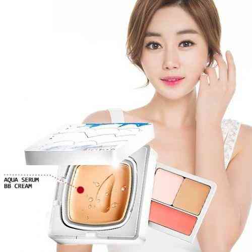 夏季油脂分泌旺盛,因此底妝需盡量輕薄。使用Aqua serum BB霜不但可起到護膚的功效還可使底妝自然輕薄。