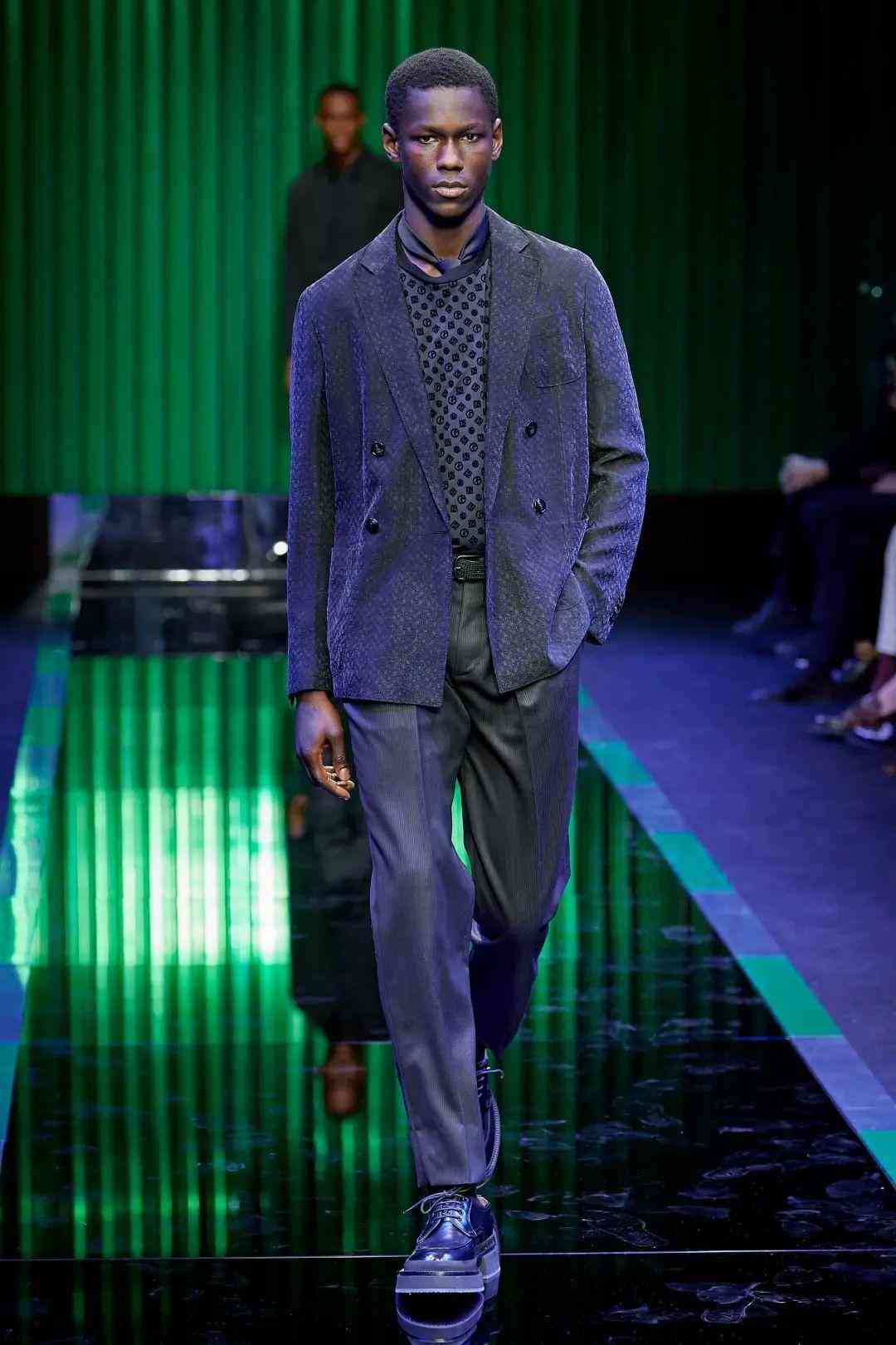倘若稍做浪漫化理解,在Giorgio Armani的設(shè)計(jì)中,我們得見(jiàn)了“銀河落九天”之美:那些珠飾流蘇、水晶點(diǎn)綴,隨著模特的行走,閃動(dòng)出了迷人的耀眼光芒。細(xì)節(jié)之處,Giorgio Armani 2022秋冬男女裝系列,亦是頗為可圈可點(diǎn),比如,女裝外套或于腰部進(jìn)行了收緊設(shè)計(jì),或狀若流體般地飄逸垂下,兩種截然不同的女性氣質(zhì)躍然于此,前者鋒利銳意,后者閑適自得;又如,男士西裝外套的內(nèi)搭,或于領(lǐng)口處搭配一抹亮色,或在下擺拼接一塊兒明媚色彩,干凈、利落、得體,但毫不死板。