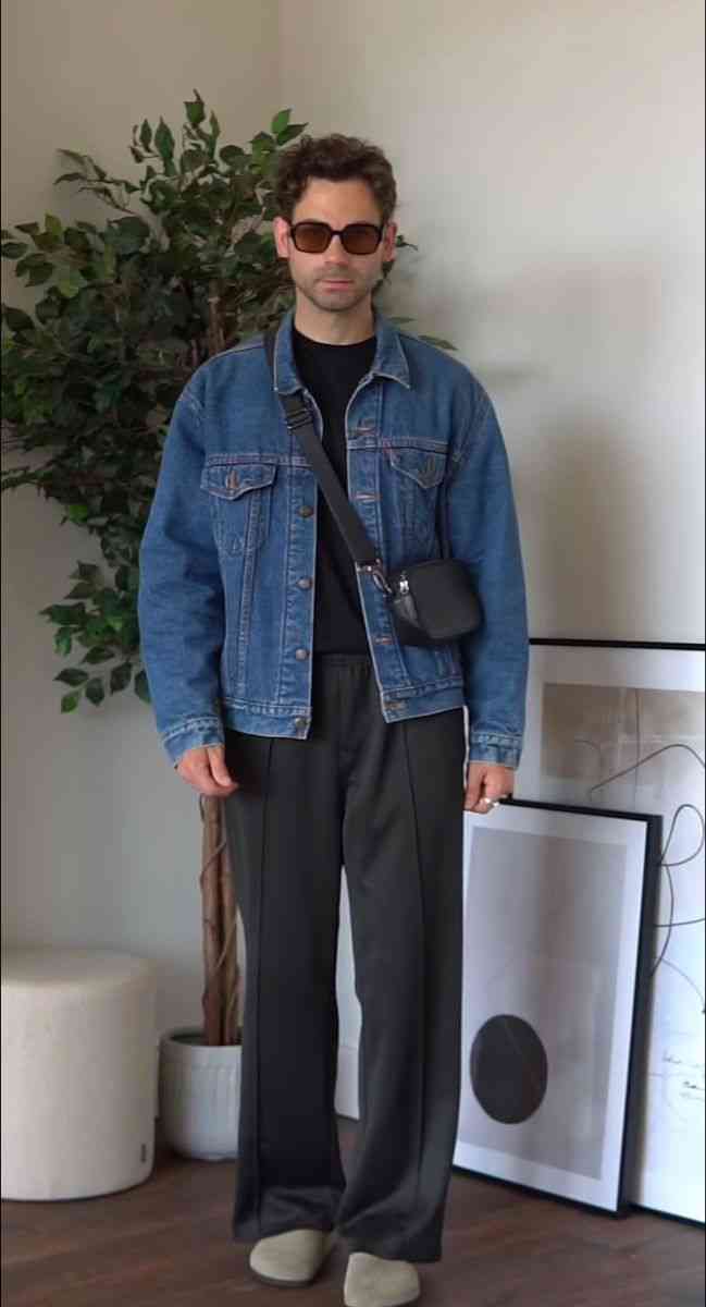 撞色穿搭其實(shí)對(duì)于不太會(huì)搭配的男士來說是非常有認(rèn)可度的,黑色內(nèi)搭做上裝配上高腰黑色褲子,上下結(jié)構(gòu)無縫銜接,小眾的包包做點(diǎn)綴,配上牛仔外套沒有180身高又何妨?照樣帥得出眾。