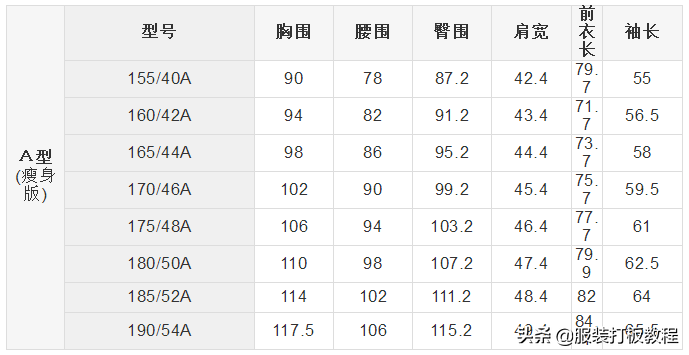 看過(guò)不少西服尺寸表,但總覺(jué)得有些欠缺,根據(jù)以往客戶尺寸總結(jié)了5種不同版型(瘦身版、標(biāo)準(zhǔn)版、健壯版、舒適型、寬大型)男士西服尺碼對(duì)照表,希望能幫助大家。