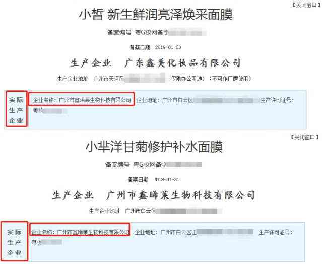 這并不是單純的巧合。頭號體驗家通過查詢備案信息發(fā)現(xiàn),這兩款微商面膜竟然是由同一家企業(yè)代工生產(chǎn)的,難怪兩者看上去就像雙胞胎姐妹花。