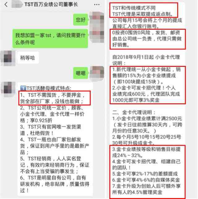 頭號體驗家與一位自稱“TST百萬業(yè)績公司董事長”的微商長聊之后發(fā)現(xiàn),TST能做到這么大,絕不只是因為有明星站臺這么簡單,其極具誘惑力的加盟機(jī)制或許才是幕后功臣。