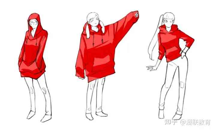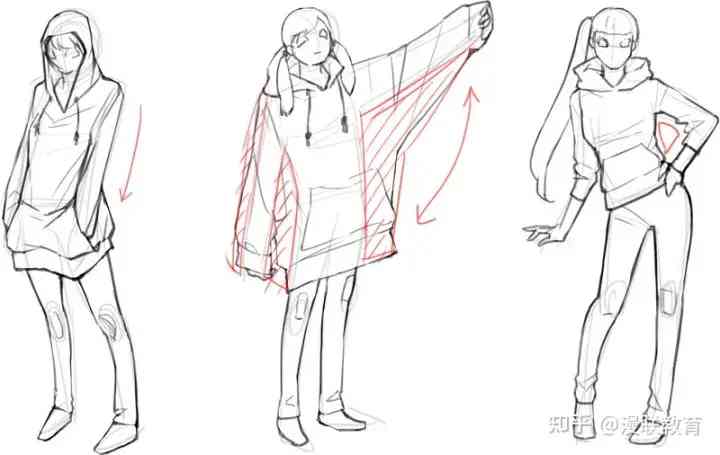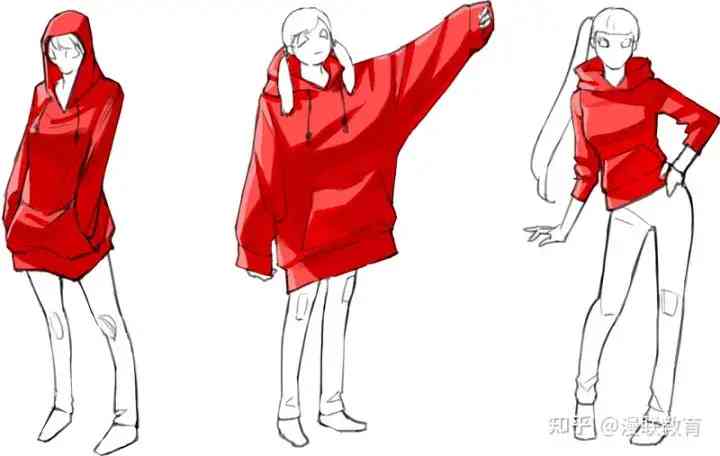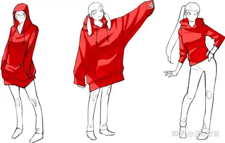 導(dǎo)讀: 線條中衣服的立體表現(xiàn)作為參考例,要注意手腳、頭腦的平衡來(lái)描繪同樣體型的三個(gè)人物。穿著連帽衫作為如何繪制立體衣服的示例。從...