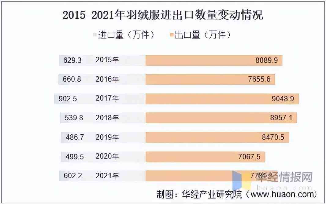 2015—2021年羽絨服進(jìn)出口數(shù)量變動(dòng)情況