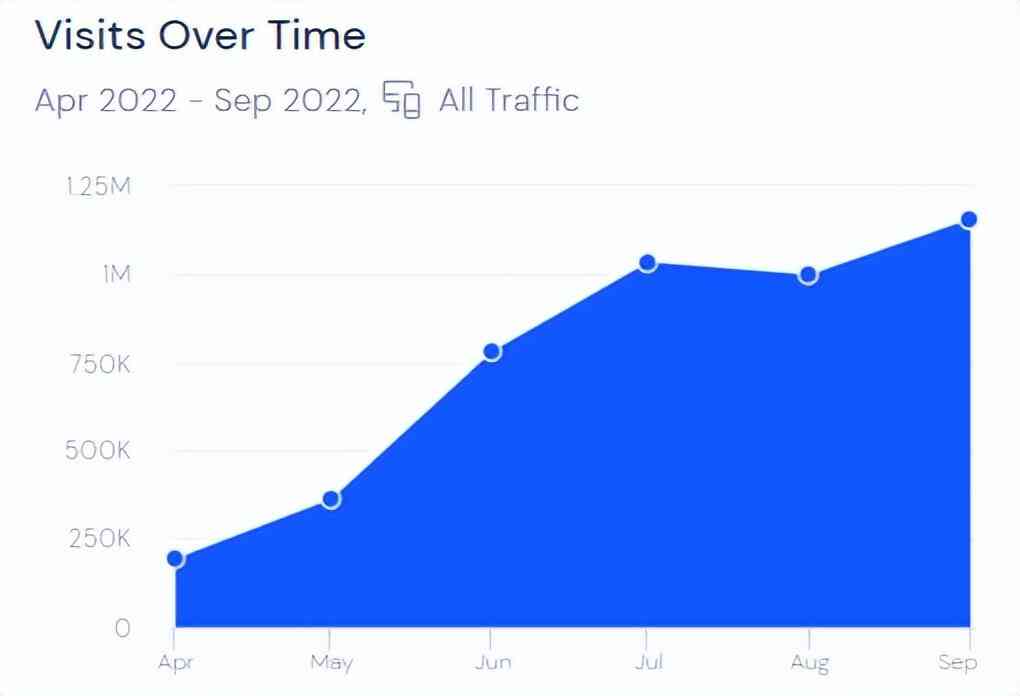 2022年,BloomChic的獨(dú)立站流量出現(xiàn)大幅增長(zhǎng),站內(nèi)流量已經(jīng)超百萬(wàn)。根據(jù)similarweb數(shù)據(jù)顯示,bloomchic.com的流量在今年五月份迎來(lái)爆發(fā)性增長(zhǎng),9月份整體流量已經(jīng)破百萬(wàn),達(dá)到115萬(wàn)。