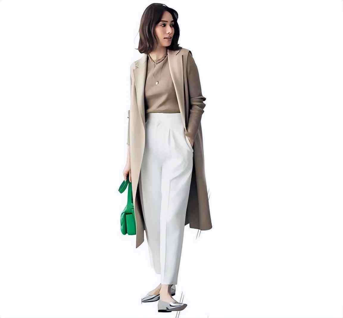秋天的職場(chǎng),可攻可守的長(zhǎng)馬甲,或許出奇地應(yīng)景。選擇優(yōu)雅米色,內(nèi)搭同色針織衫,下配白色九分褲,層次漸變呼之欲出。