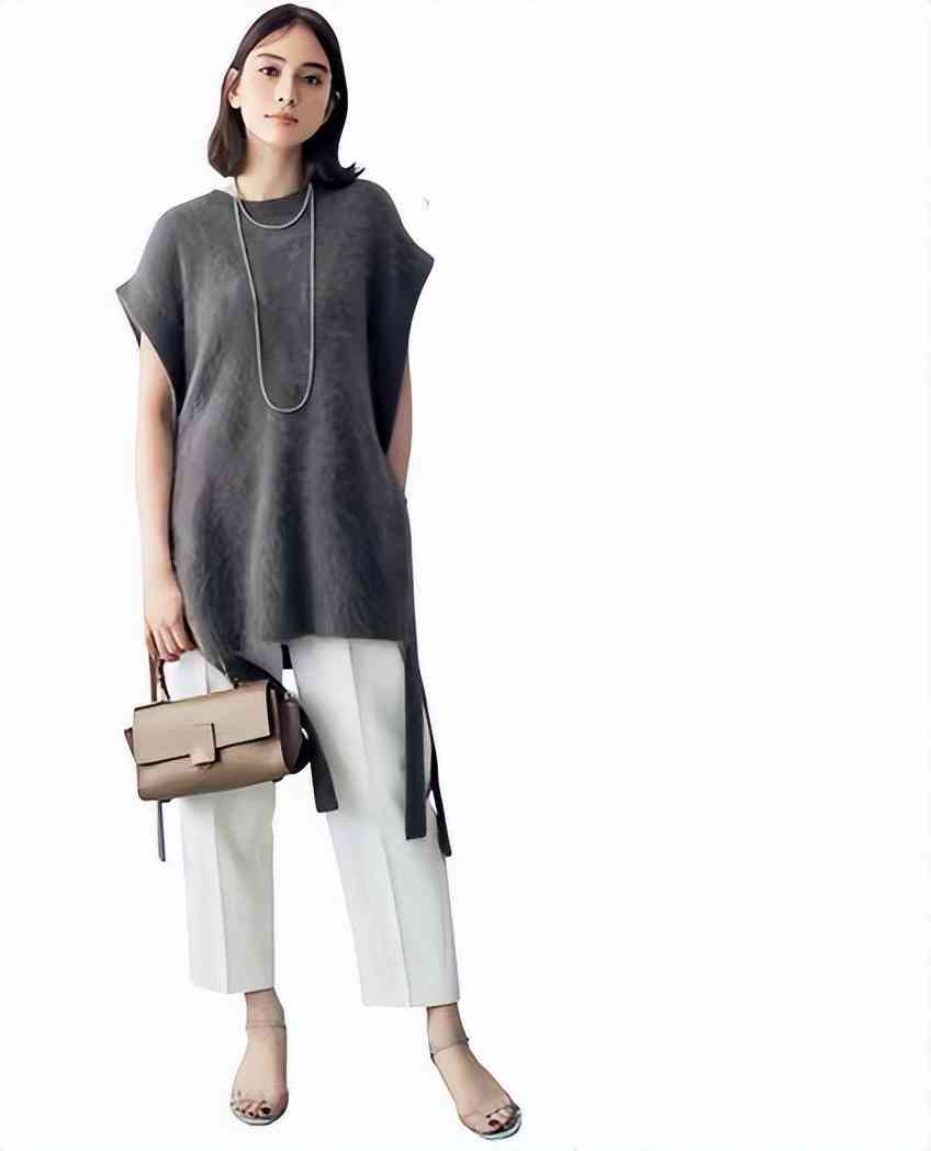 休閑約會(huì)時(shí),同條小白褲,隨意搭配一件深灰色毛衣,寬松舒適的大廓形正好匹配利落九分褲。點(diǎn)綴長(zhǎng)項(xiàng)鏈營(yíng)造胸前亮點(diǎn),一來(lái)化解毛衫的厚重;二來(lái)鎖定上移焦點(diǎn)。