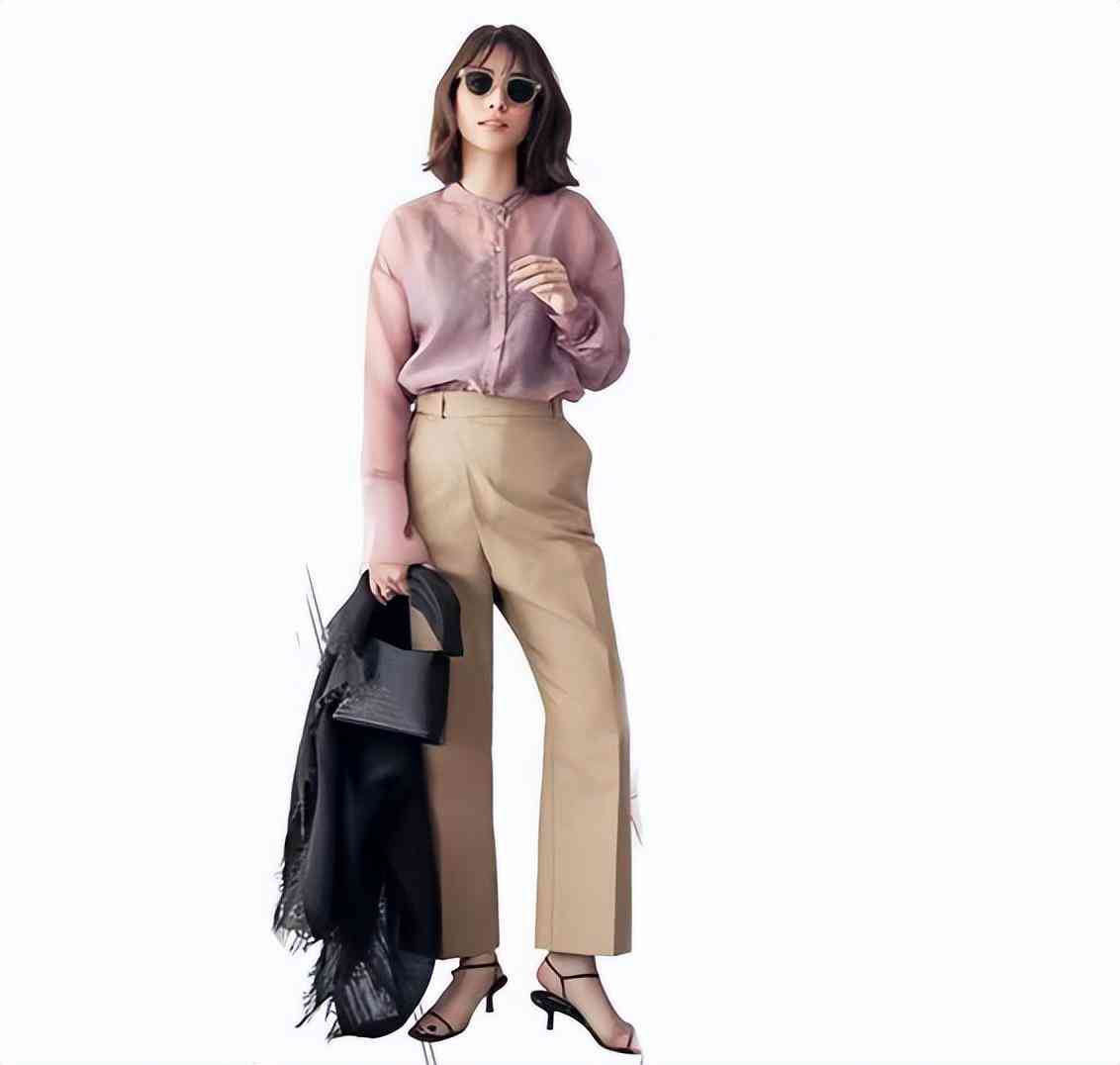 透視襯衫的正式感,需要內(nèi)搭深色吊帶來(lái)助攻。選擇經(jīng)典卡其色長(zhǎng)褲,將柔美與利落一網(wǎng)打盡。色調(diào)一致、風(fēng)格混搭,大氣有型。