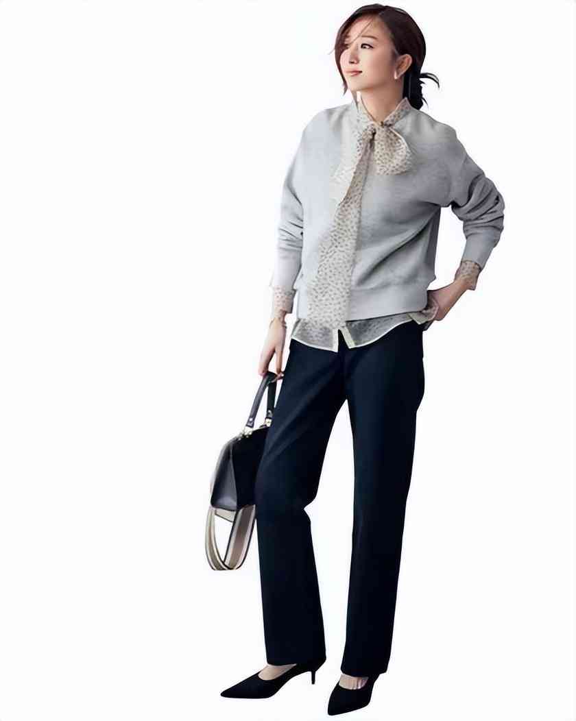 選擇小黑褲與尖頭高跟鞋同行,上班通勤毫不違和。