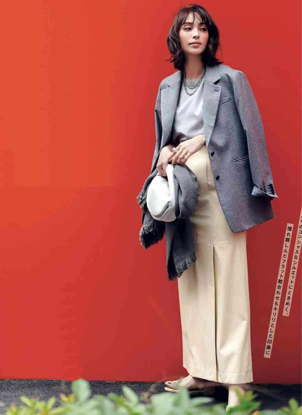 先入為主的干凈與利落,是一面招牌。它的質(zhì)感來(lái)自:面料+褲長(zhǎng)。挺括有型時(shí),長(zhǎng)度最好九分;柔軟飄逸時(shí),十分乃至超長(zhǎng)皆可。一旦處理不好,就會(huì)引發(fā)視覺(jué)災(zāi)難。