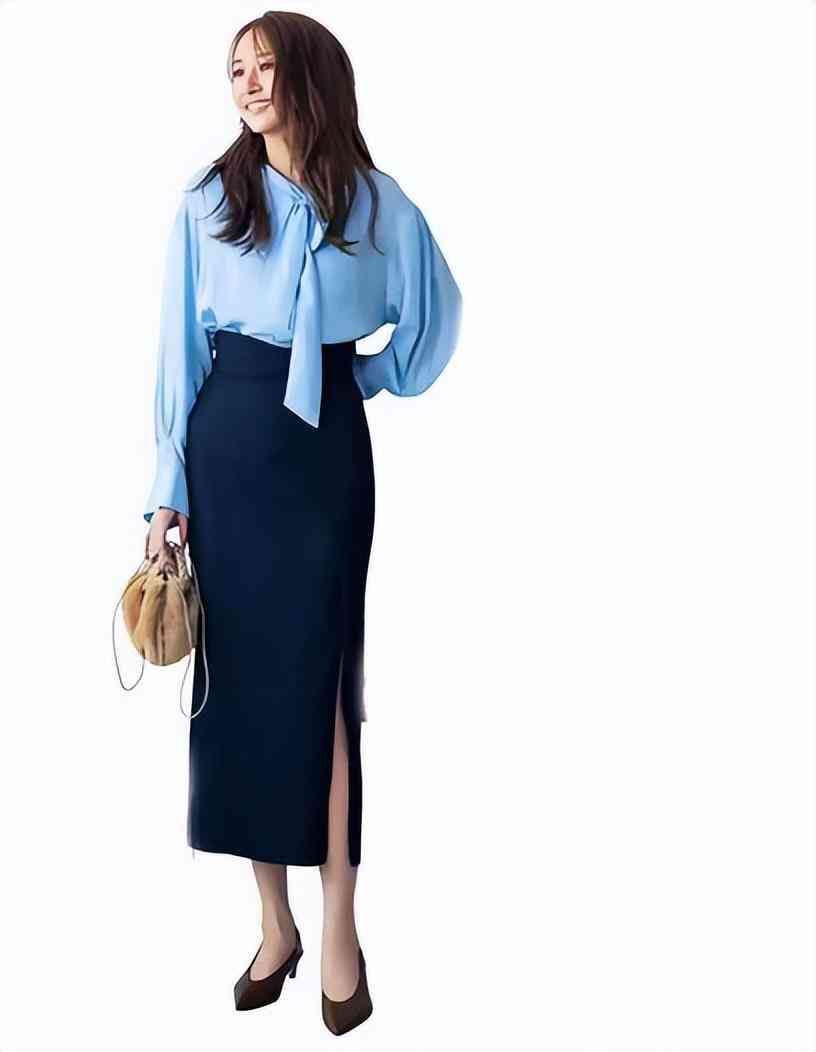 藍(lán)色襯衫的爽朗,猶如吹來(lái)的絲絲冷風(fēng),讓人心頭凜然。干凈悠遠(yuǎn),質(zhì)感與大氣瞬間氤氳。與黑色半裙搭配,一藍(lán)一黑,樹(shù)立著職場(chǎng)氣質(zhì)標(biāo)桿。