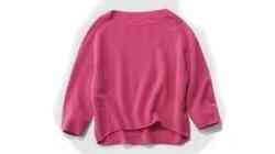 高雅一字領(lǐng),是這件玫紅毛衣的風(fēng)格標(biāo)簽。