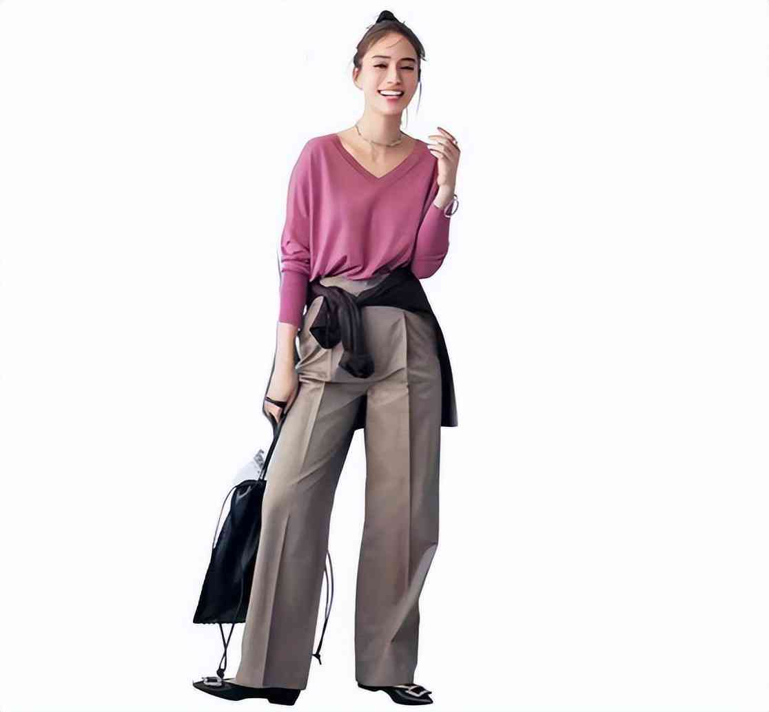 單穿時(shí),露出鎖骨的大V領(lǐng)口,隨意點(diǎn)綴一條項(xiàng)鏈,性感又有亮點(diǎn)。搭配米灰色長(zhǎng)褲,又颯又美。輕薄針織衫的疊穿,彌補(bǔ)層次缺憾。