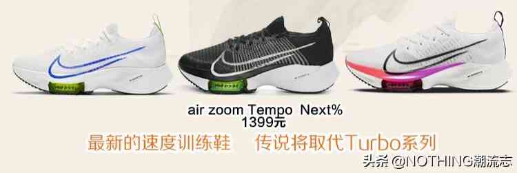 披著NEXT%光環(huán)的速度訓練鞋,價格卻比Alphafly便宜了900元,同樣的zoomX中底+air zoom氣墊,不同的是用一體式復合板代替了碳板,后跟采用React材質,據說還會代替Turbo系列,成為速度訓練鞋的主力,只是很多人覺得外觀太厚重了。