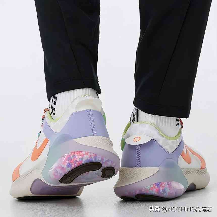 透明的鞋底放了數(shù)千彩色顆粒的緩震跑鞋,必須給鞋底來一張?zhí)貙憽Ec其說是跑步,還不如出街。