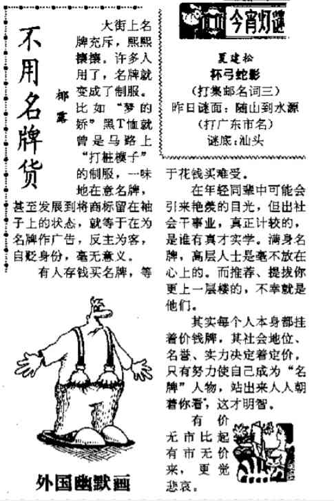 5. 椰露,《不用名牌貨》,新民晚報,1994年01月06日。