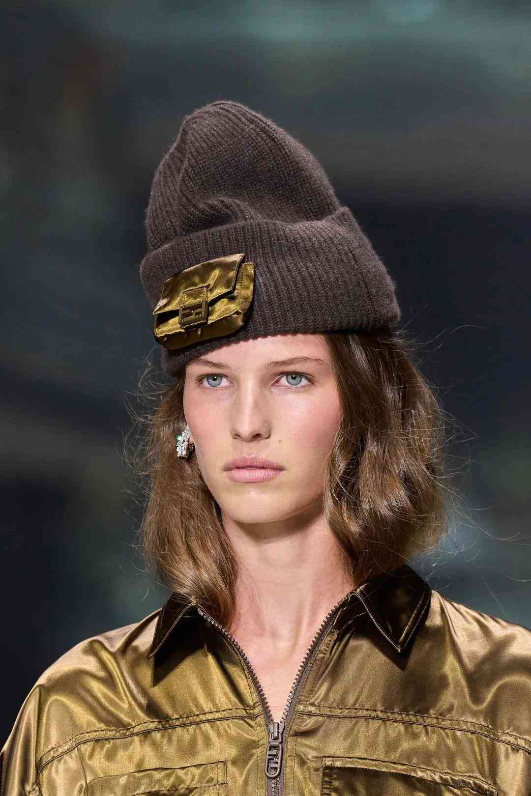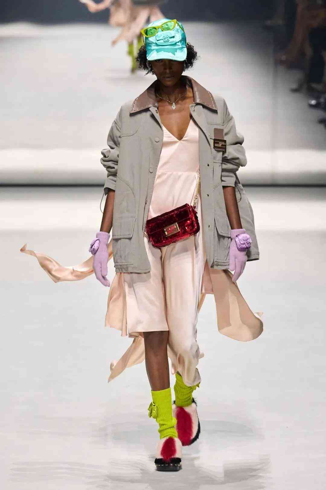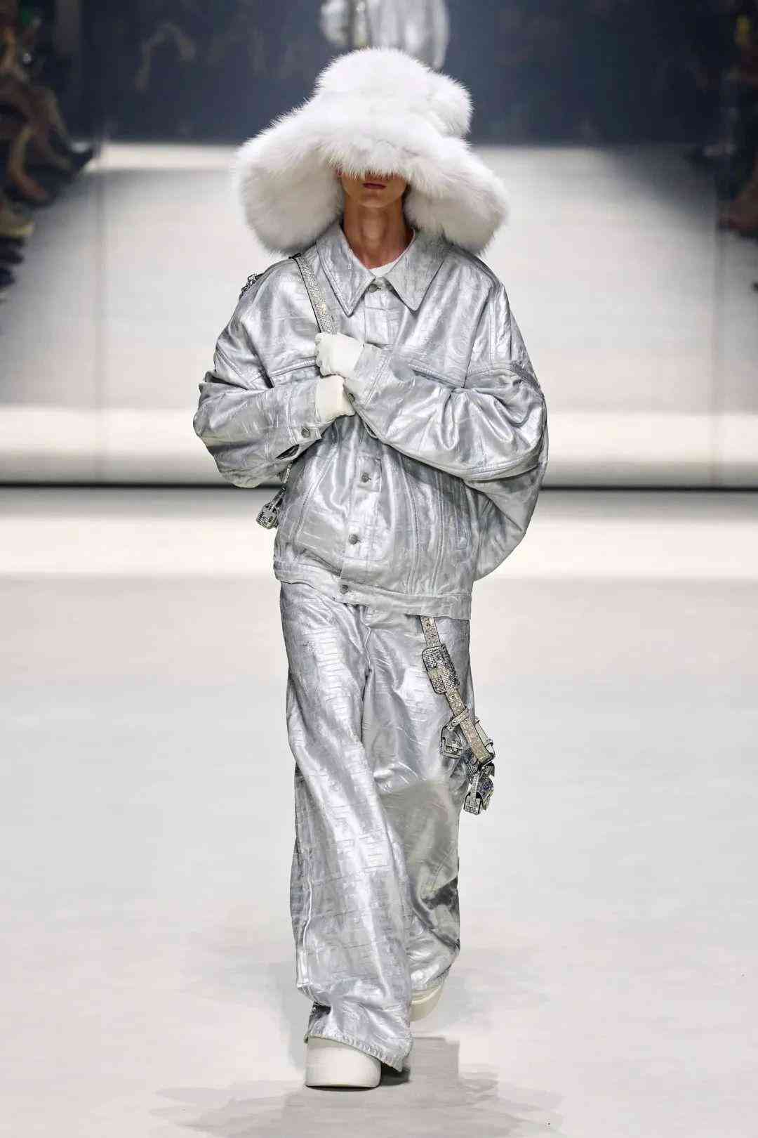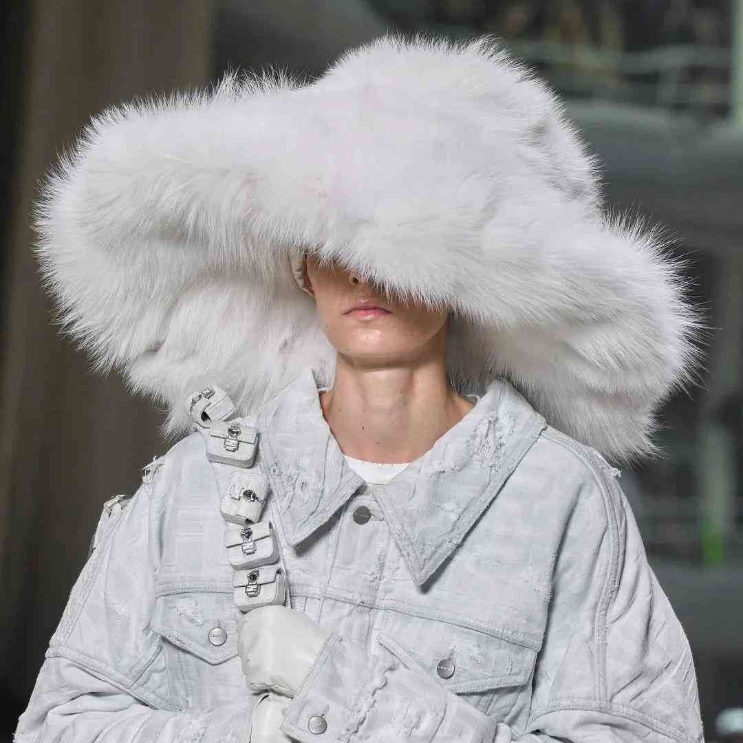 在極具他本人特色的標(biāo)志性再生皮草帽中,也巧妙的融入Baguette元素,十分有個(gè)性,將他心中的FENDIROMA詮釋地淋漓盡致。