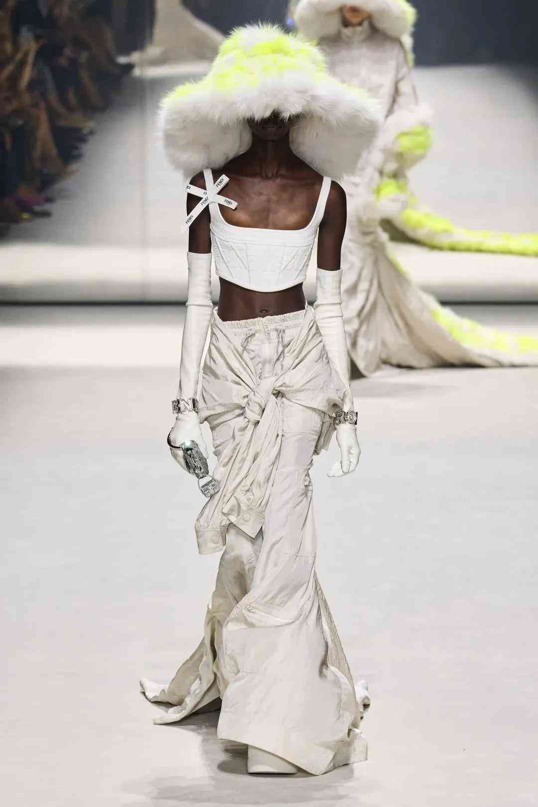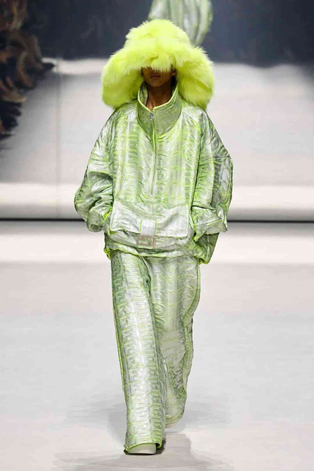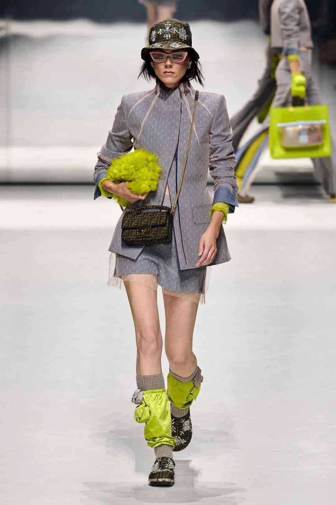 在極具他本人特色的標(biāo)志性再生皮草帽中,也巧妙的融入Baguette元素,十分有個(gè)性,將他心中的FENDIROMA詮釋地淋漓盡致。