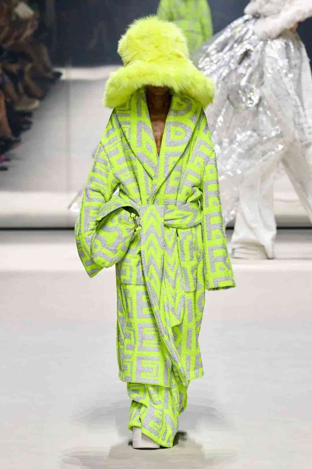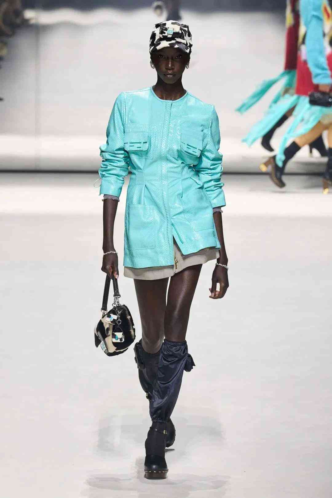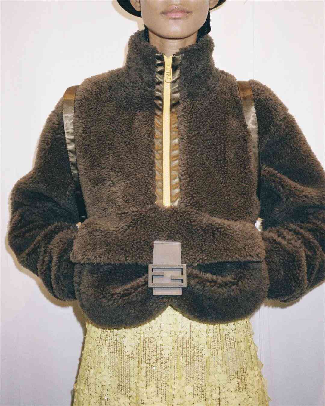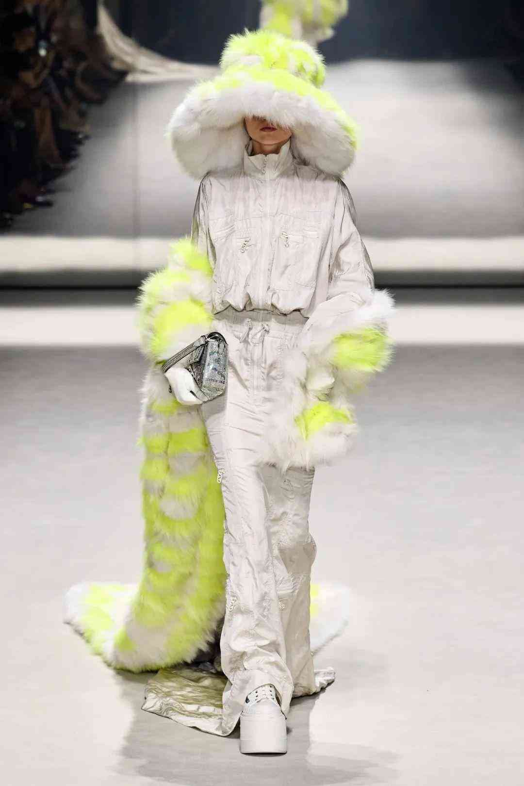 在極具他本人特色的標(biāo)志性再生皮草帽中,也巧妙的融入Baguette元素,十分有個(gè)性,將他心中的FENDIROMA詮釋地淋漓盡致。
