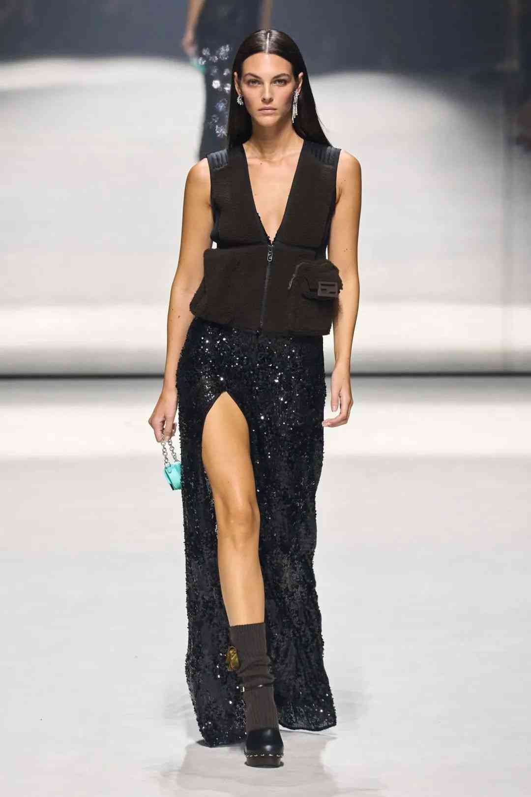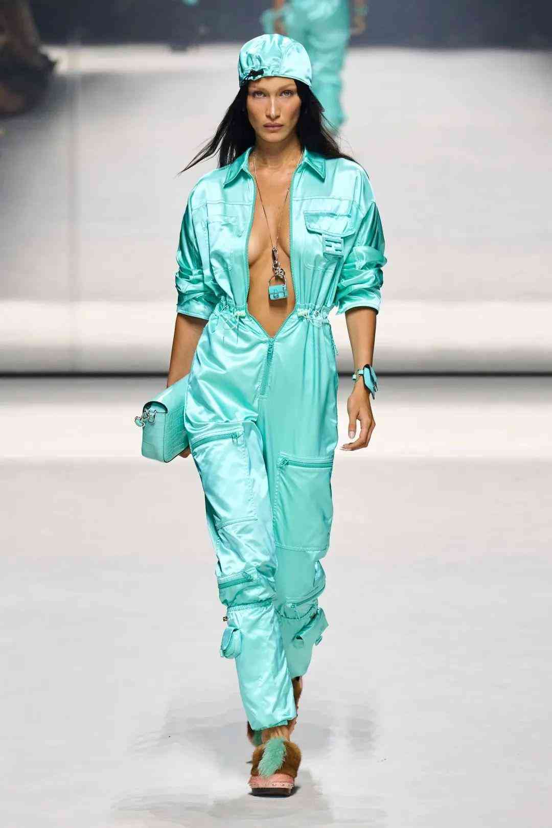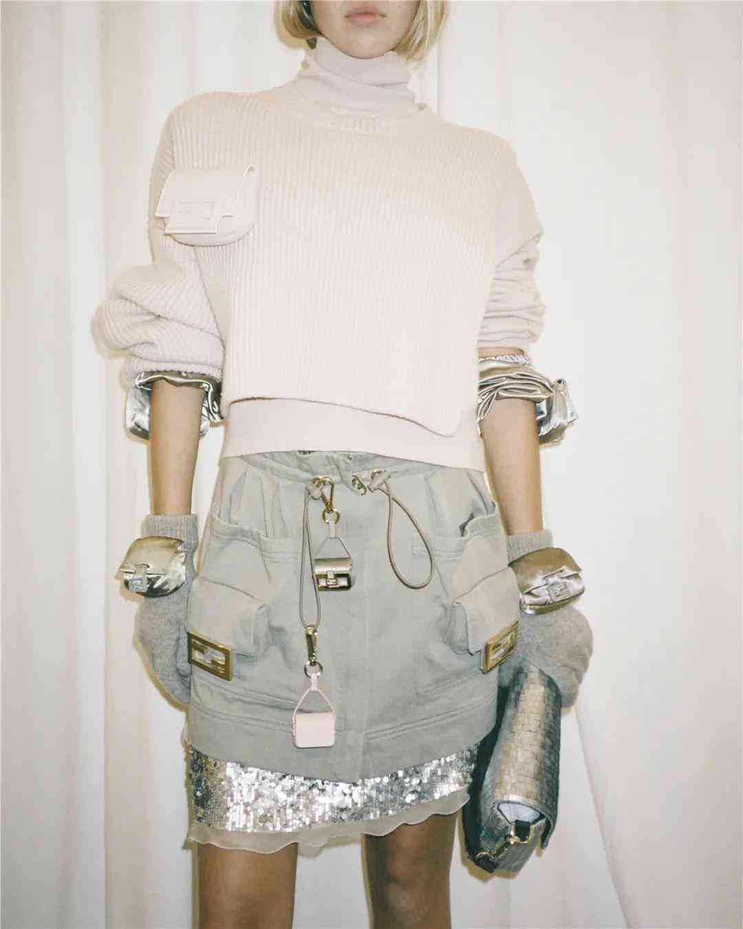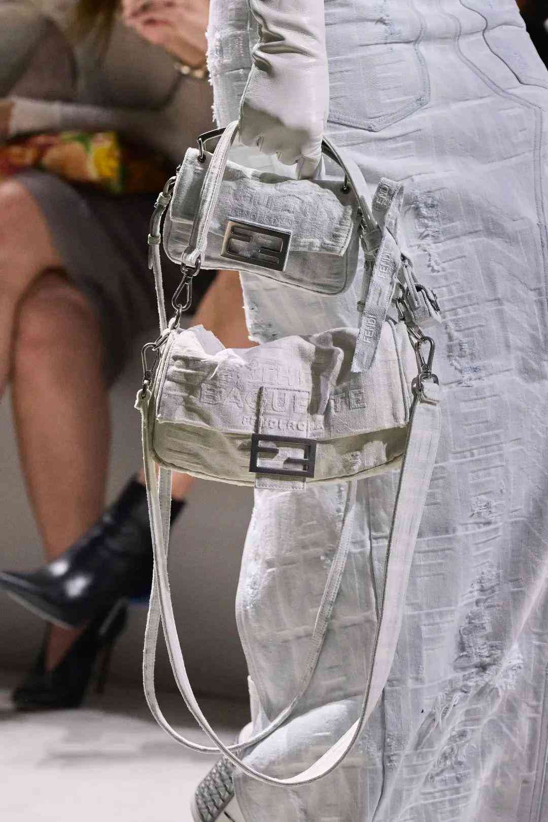 在用途上,本次大秀的單品為我們提供了具有豐富想象力的使用情境。Baguette作為FENDI的一大強(qiáng)烈符號,可以出現(xiàn)在耳環(huán)、項(xiàng)鏈這樣的配飾上,也可以無縫融入實(shí)穿的單品中。