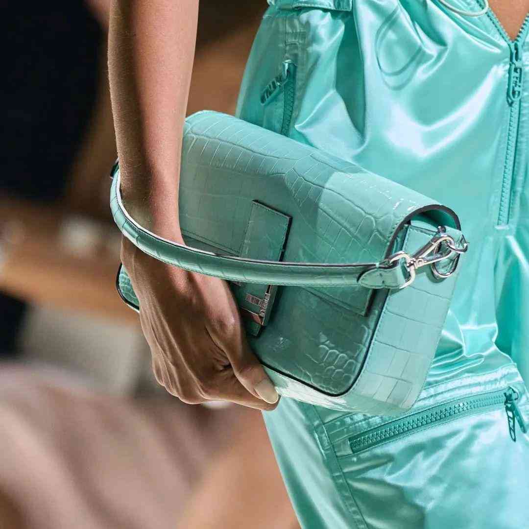 Bella Hadid手上的這款Tiffany藍(lán)Baguette由鑲嵌著鉆石的亮面鱷魚皮制成,Tiffany & Co.將標(biāo)志性的色彩,融入整個(gè)系列,靈動(dòng)而亮眼。