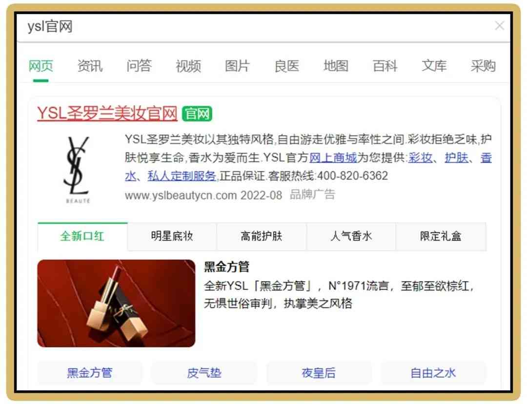 這里所說(shuō)的官方旗艦店是指的是官方授權(quán).的網(wǎng)站!比如你想買(mǎi)個(gè)ysl的產(chǎn)品,在百度上搜索ysl品牌名稱,官網(wǎng)一般.條就會(huì)自動(dòng)彈出來(lái)。