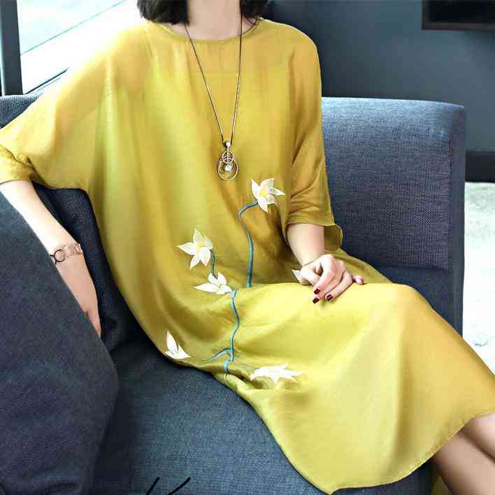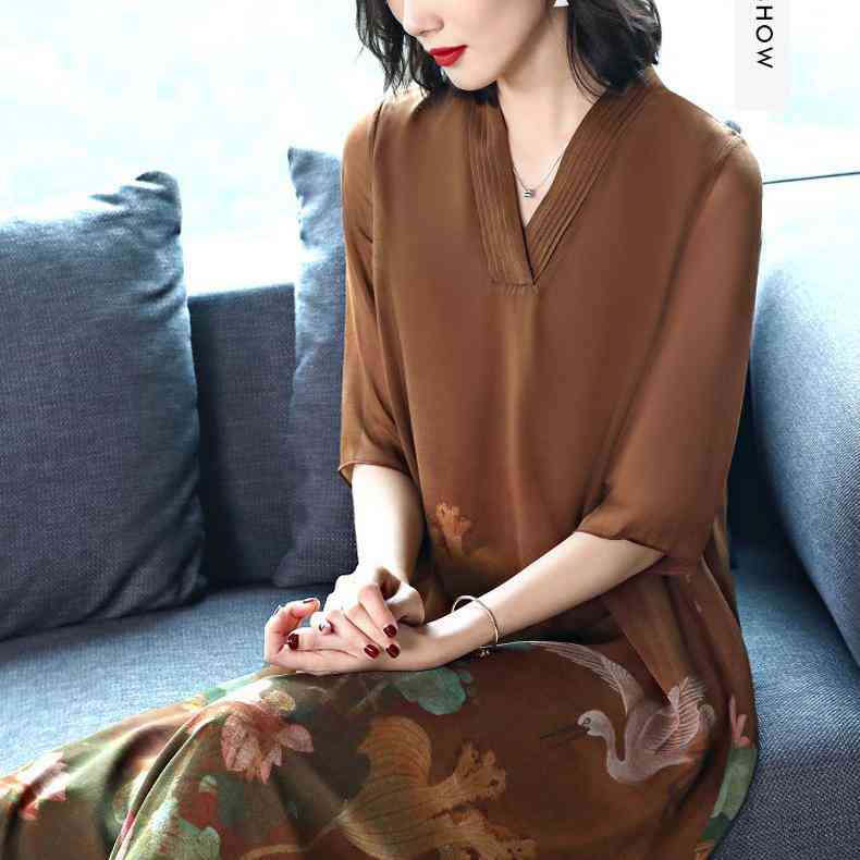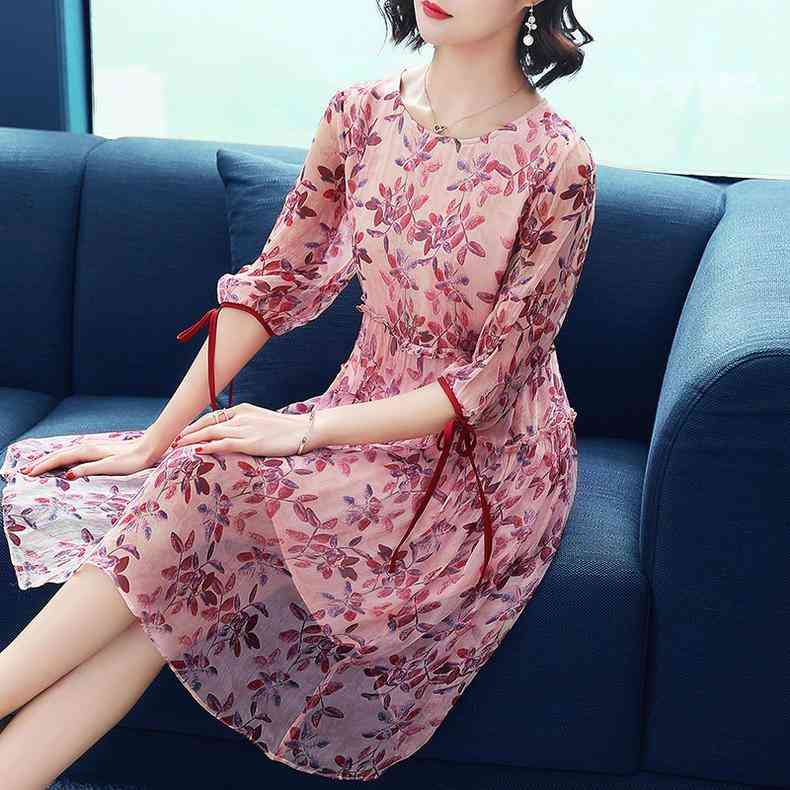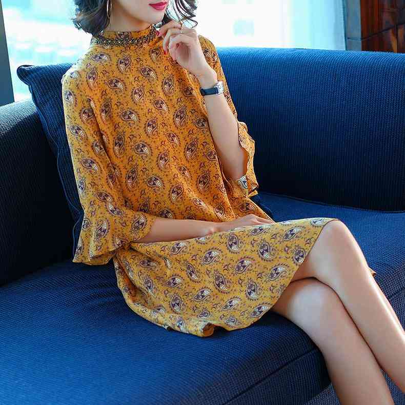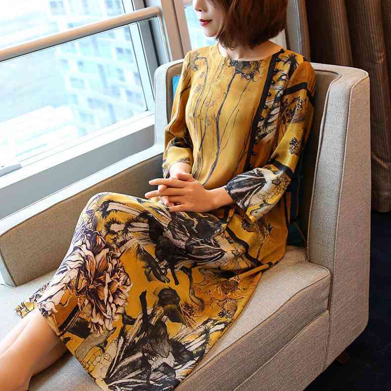 真絲連衣裙,顧名思義就是用真絲做的連衣裙,它柔軟光滑,質(zhì)地柔軟,花色豐富多彩,這件印花真絲連衣裙,舒適涼爽,給您不一樣的穿著體驗(yàn)