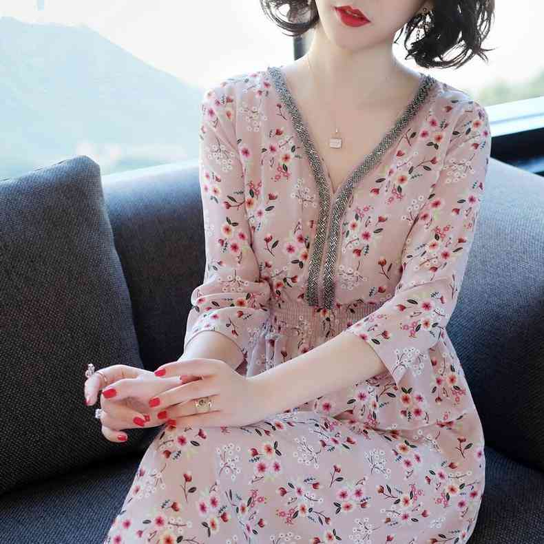 很是淑女的一款連衣裙,采用經(jīng)典圓領(lǐng)設(shè)計(jì),露出性感鎖骨美,七分袖設(shè)計(jì),修飾手臂線條細(xì)又長,淡雅的粉色系列碎花,彰顯甜美洋氣的輕熟風(fēng),只需要搭配一款淺口鞋,就能盡顯風(fēng)情萬種女人味。
