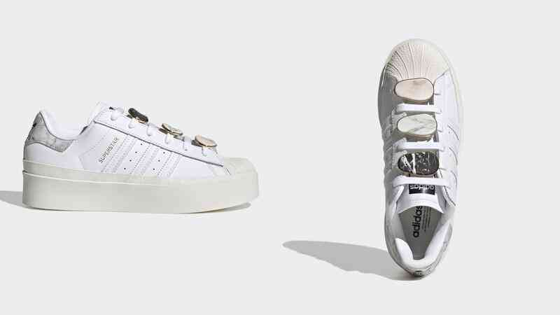 大理石系列還有Superstar Bonega W,采用部分回收材質(zhì)打造,保留全白的鞋面設(shè)計,和穿著舒適的記憶泡棉鞋墊,不同之處,將鞋后跟處渲染大理石紋,并在鞋帶處加上金屬感的大理石扣飾,為球鞋營造滿滿的奢華,也能滿足女孩們不同的穿搭需求。
