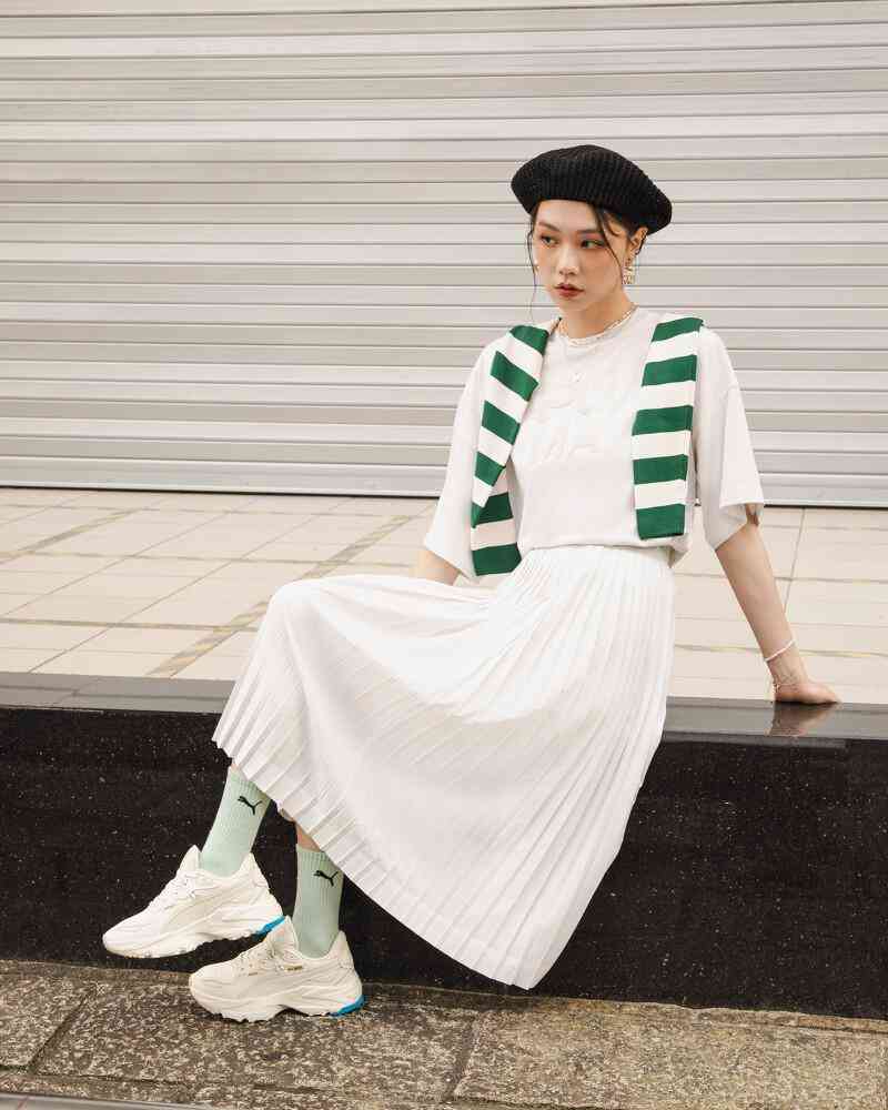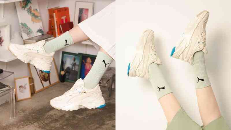 Puma偕同品牌代言人蔡依林帶來全新專屬女性的球鞋Kosmo Rider,延續(xù)Rider復(fù)古鞋身輪廓,加入嶄新增高厚底設(shè)計,鞋身側(cè)邊的線條也從圓潤改成更具立體感,由網(wǎng)眼、皮革拼接成的奶油色鞋面,搭配釉藍(lán)色線條點綴,當(dāng)然還有Puma經(jīng)典標(biāo)志,另有黑色款供選擇,Jolin都有了,你能不穿嗎?