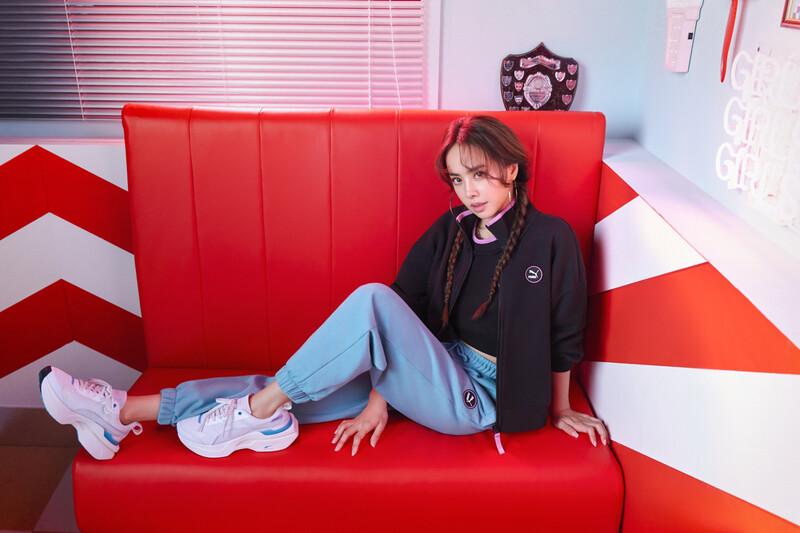 于2022年新推出的Orkid INFUSE,是專為女生打造的球鞋選擇,名稱取自O(shè)rchid Flower蘭花,有歌頌女生堅強、勇敢的涵義,球鞋采用網(wǎng)眼布和質(zhì)感皮革拼接而成,搭載鋸齒狀大底,具有拉長腿部線條的視覺效果,并在側(cè)面放上Puma金色標(biāo)志,吸睛度十足。