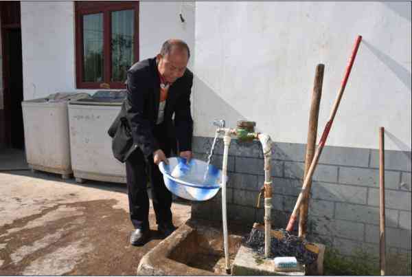 楊文發(fā)在家門口取自來水。本報記者潘德鑫攝