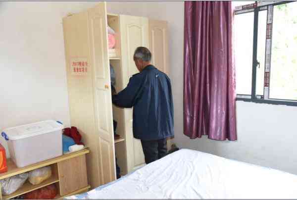 黃德貴在新房整理衣柜。本報記者潘德鑫攝