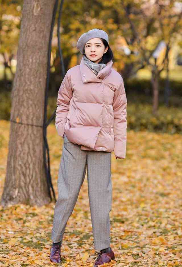 小款羽絨服搭配毛呢褲