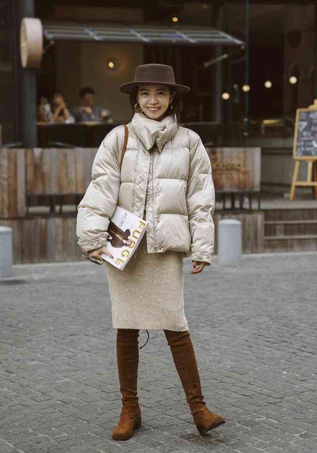 小款羽絨服搭配針織裙