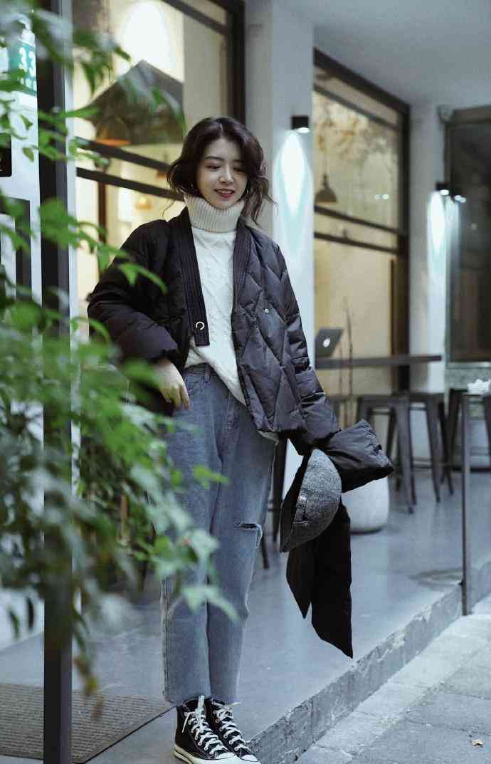 牛仔褲一直是隨性百搭的代名詞,我們小款羽絨服的三種穿搭中怎么可能少了它。除了對(duì)著裝要求十分高的場(chǎng)合,牛仔褲在什么場(chǎng)合穿都不會(huì)出錯(cuò)。并且牛仔褲的顏色和款式的選擇十分多,在冬天既滿足了對(duì)衣服顏值的需要,又滿足了保暖的基本訴求。