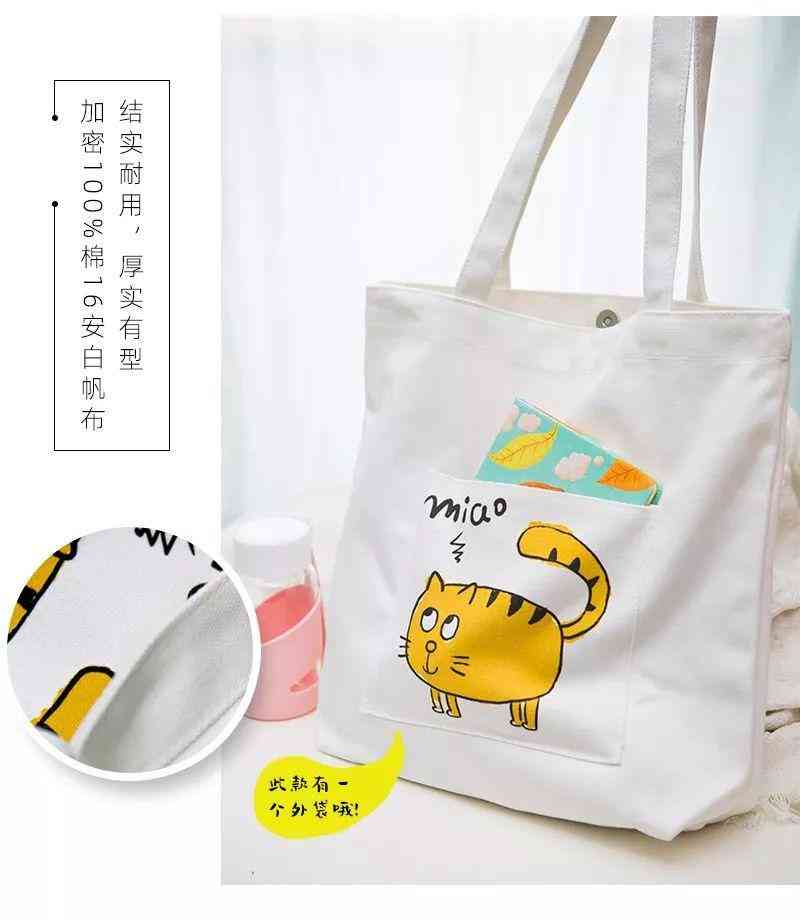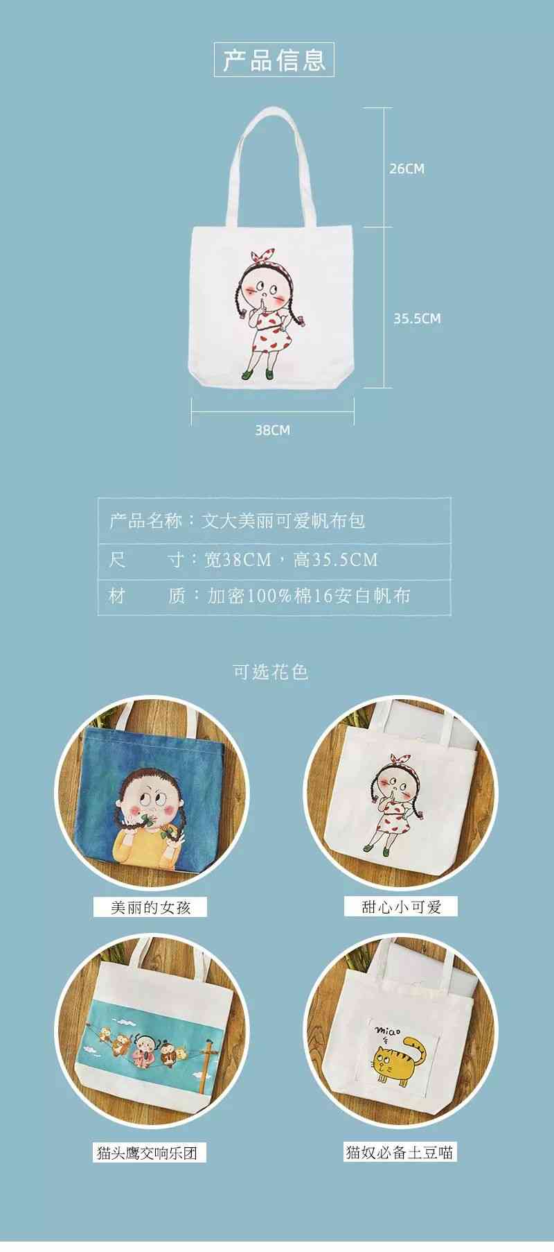 5.這個系列的帆布包,一共4個款式,尺寸一樣,圖案都超可愛,由高精度數(shù)碼印刷,顏色正,有質(zhì)感,扔洗衣機里洗也不易褪色。