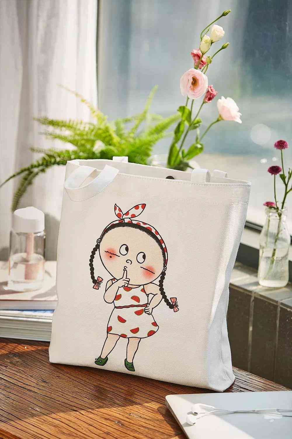 帆布包兒,怎么能少的了這樣的夏日風(fēng)情圖案吶~這款包包上,印著穿著西瓜圖案小裙裙的文大美麗,圖案大小適中。讓整個包包,包括背著包兒的你都透著干凈清涼,不管去哪,都能走路帶風(fēng)。