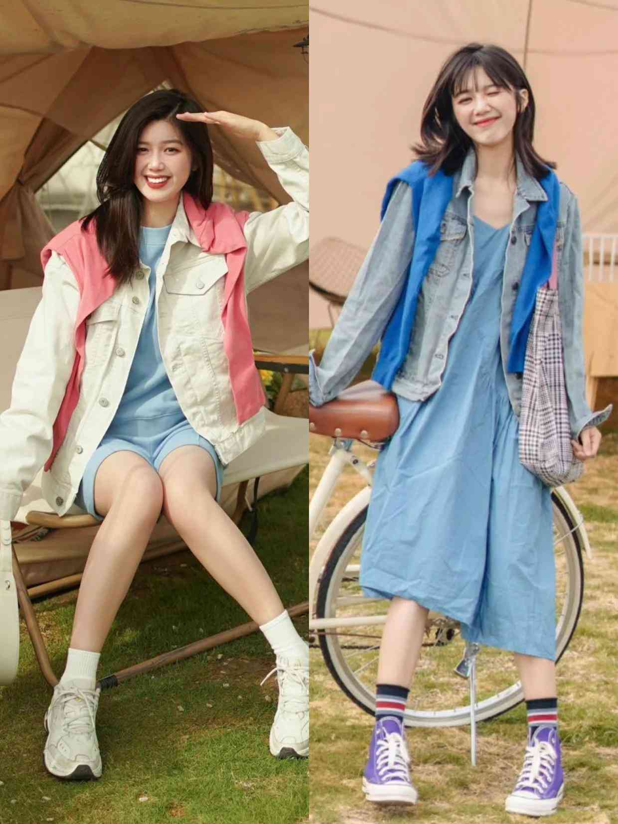 牛仔外套搭配連衣裙,這樣去穿可以中和牛仔外套的休閑感,讓你的造型看上去更浪漫,中長款的連衣裙配上短款的牛仔外套,修飾了比例,同時也可以用這樣的穿搭來展現(xiàn)出女人味,就算是秋天穿也不會很厚重呢,再結(jié)合運(yùn)動鞋,還能增添休閑氣質(zhì)。