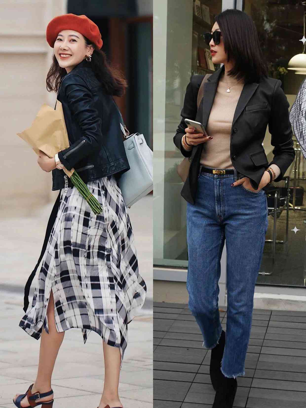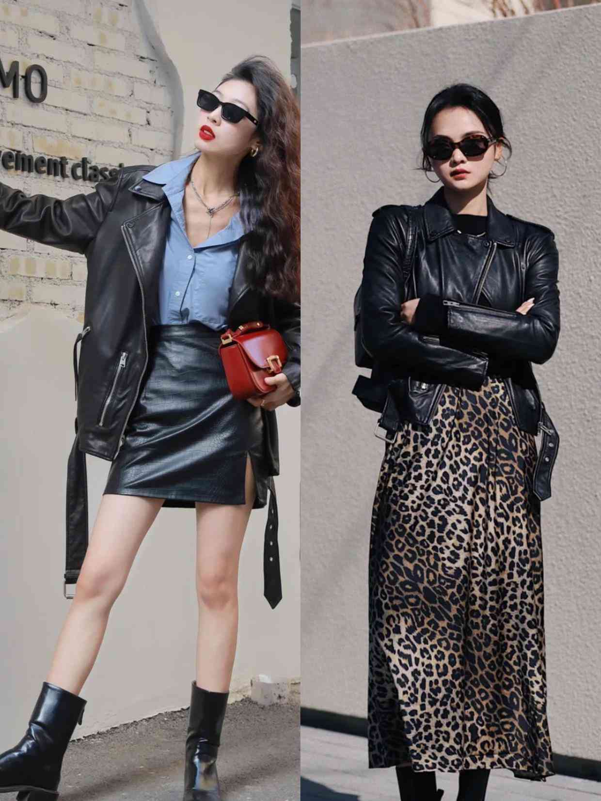 而且皮衣的搭配風(fēng)格也很多樣化,除了酷帥風(fēng),大家還可以配上裙子,像這種溫柔的半身裙配上一件皮衣外套可鹽可甜,同時也很性感,豹紋半身裙或者是皮革半身裙都可以來和皮衣對比。