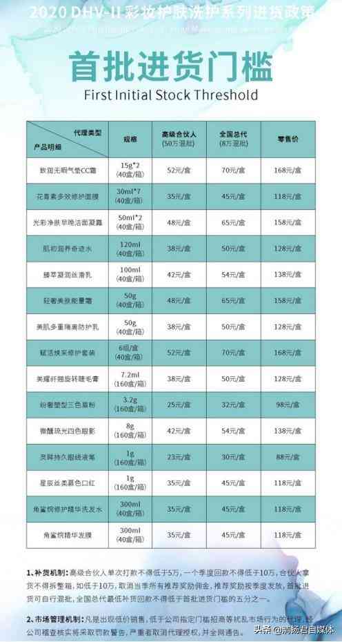 補貨機制:高級合伙人單次打款不得低于5萬,一個季度回款不低于10萬,合伙人拿貨不得拆整箱,如低于10萬,取消當季所有推薦獎勵傭金,推薦獎勵按季度發(fā)放,首批進貨可自行混批,全國總代最低補貨回款不得低于首批進貨門檻的五分之一。