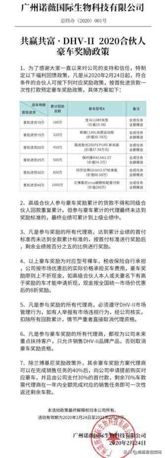 導讀: 本文清揚君帶大家了解一下DHV微商的代理制度和誘人的豪車獎勵。公開資料顯示,DHV-II是廣州諾薇國際生物科技有限公司旗...