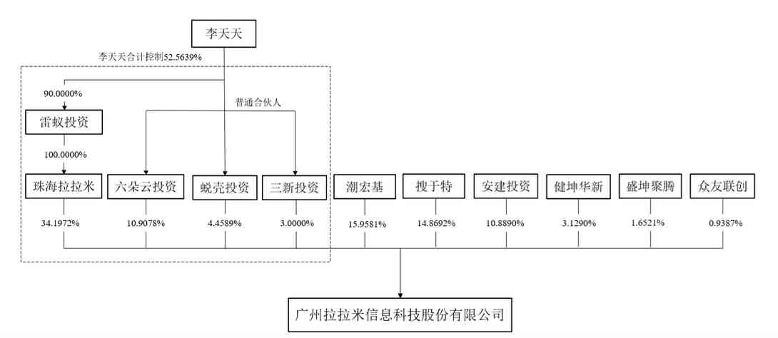 IPO前,公司的實控人為李天天,其通過珠海拉拉米、六朵云投資、蛻殼投資和三新投資控制公司52.5639%的投票表決權,間接持有公司46.7620%的股份。
