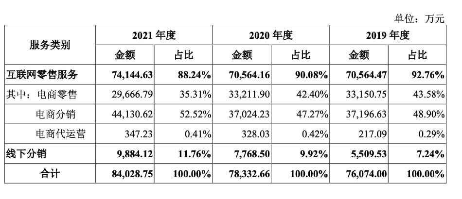 這里需要說明拉拉米的銷售模式,公司主要分為電商零售、電商分銷、電商代運營三種互聯網零售模式以及線下分銷模式,報告期內電商零售和電商分銷收入合計占比在90%左右,兩者均通過買斷品牌方產品并對外銷售以獲得收入,差異在于前者直接在電商平臺開設店鋪直接銷售給消費者,后者是先銷售給下游電商分銷客戶,再由下游電商分銷客戶進行銷售;另電商代運營指公司向品牌方店鋪提供電商服務,并向品牌方收取相關運營服務費。