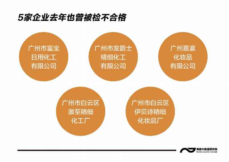 南都大數(shù)據研究院比對發(fā)現(xiàn),上述20家企業(yè)中,廣州市富寶日用化工有限公司、廣州市發(fā)爵士精細化工有限公司、廣州嘉瀛化妝品有限公司、廣州市白云區(qū)激至精細化工廠、廣州市白云區(qū)伊貝詩精細化妝品廠等5家企業(yè),在去年的監(jiān)督檢查中就被檢出存在問題和缺陷。