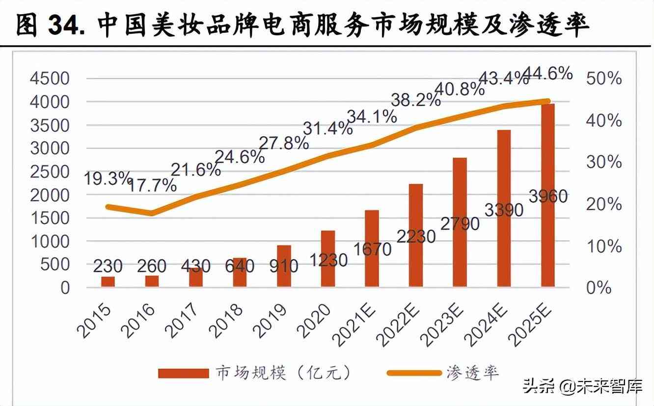 (3)淘系時代(2015-2018 年):電商流量崛起,流向入口由電視向互 聯(lián)網(wǎng)切換。2015 年,在華巨頭歐萊雅、寶潔大幅縮減電視廣告投入,分別同 比下滑 34.5%、27.2%,并加大數(shù)字化營銷投入。該階段淘系一家獨(dú)大,“淘 品牌”迎來電商紅利。例如,依托淘寶起家的御泥坊在護(hù)膚品品牌的市占率 排名由 2015 年的第 54 位提升至 2018 年的第 31 位。