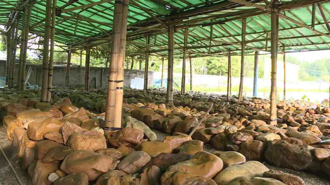 一個廣東黃蠟石玩家的收藏,大約 200 噸(圖源:河源廣播)