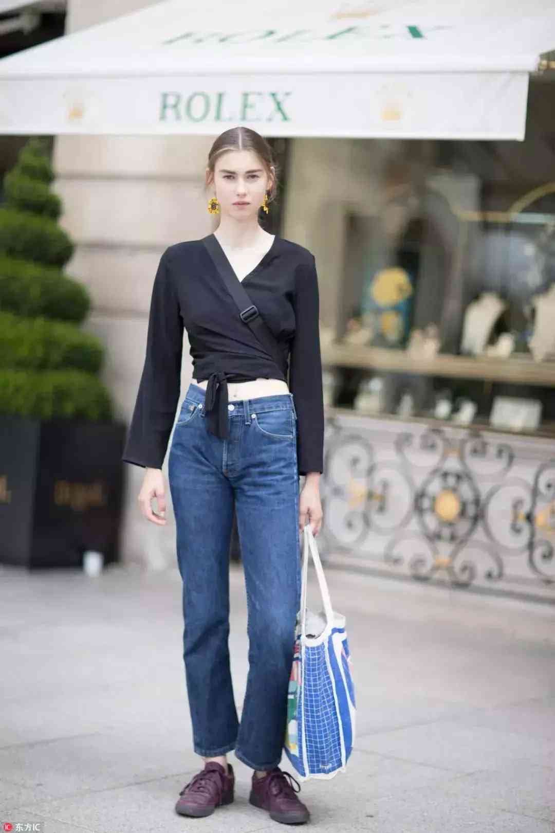 深V領露臍上衣,顯臉小一把手。在高腰處打個結(jié),立馬回歸到18歲的俏皮熱情。不過深V開口較大,覺得露的姑娘可以選擇長袖款的,看上去就能穩(wěn)妥許多。搭配褲裝時再配一只有個性的包包,例如售票員式腰包,田園風草編包等,回頭率秒翻倍。