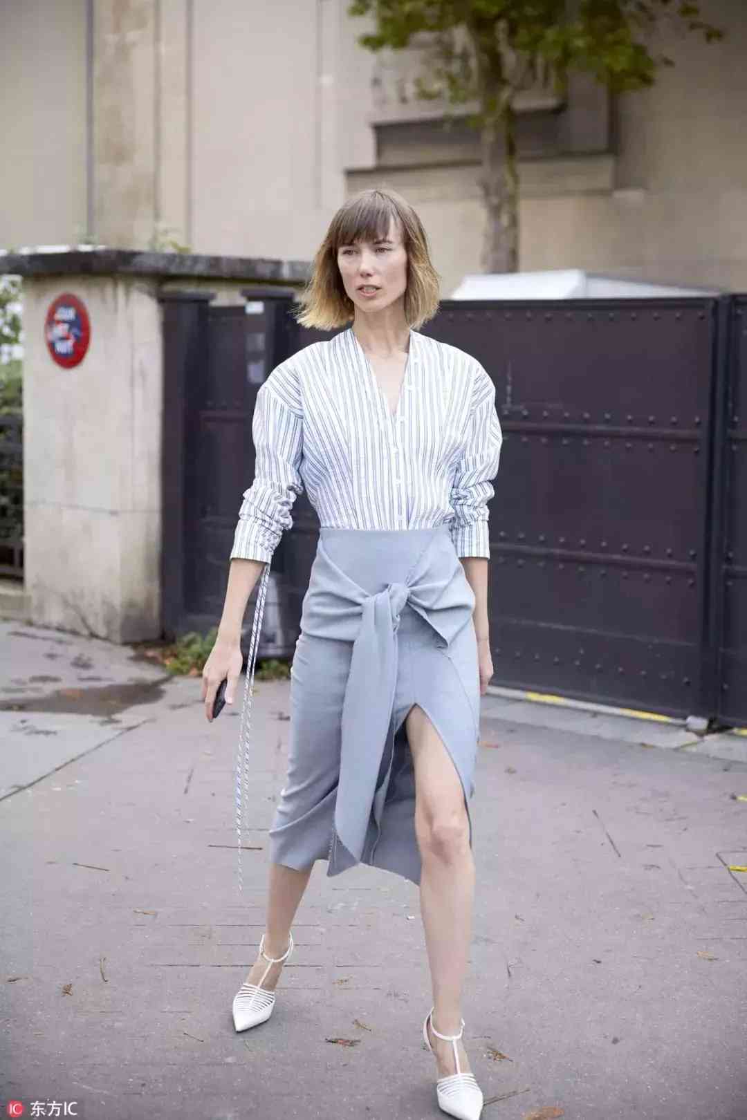 離腰一寸打結(jié)法可以讓你的上班裝立刻變得“有質(zhì)感”起來。比如博主這套,條紋襯衫和西裝裙,無可厚非卻也無亮點,但腰間模擬系一件外套打了個結(jié),是不是質(zhì)感上了好幾個層次?